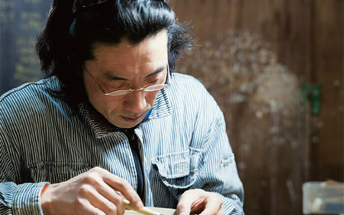 象嵌(ぞうがん)の手法を取り入れ、繊細な文様を描き出しています。決して機械では作ることのできない陰影が、観るものの心を捉えます。