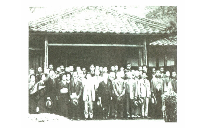昭和17年(1942 年)、秋月邸新築に際し、老朽化した萬歳亭( 現在の資料館西側) は取り壊された。萬歳亭の別棟はそのまま残し、屋根を瓦に改め、35年間にわたり貴族院の議員を務めた秋月種英が書斎として使用した。その別棟も老朽化に加え、シロアリの被害が激しく、取り壊すこととなったが、貴重な文化財を惜しむ声が強く、昭和61年(1986 年)、「萬歳亭はなれ」として復元された。