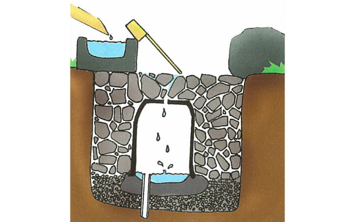 手洗い鉢などの傍らに小さな空洞を作り、その中に水滴を落として水音が空洞の壁面に反響、地上に聞こえてくるかすかな響きを楽しむ設備である。