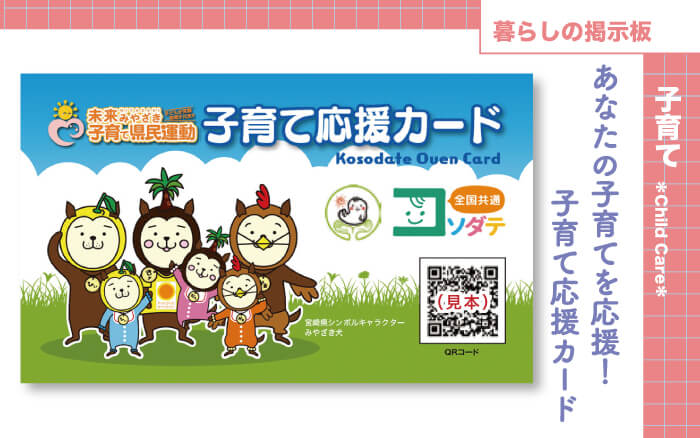 小学生以下の子ども、または妊娠中の人がいる家庭のために、子育て応援カードを配布しています。