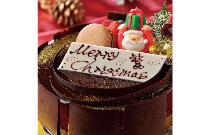 チョコレートケーキの上質感がクリスマス気分を高めます。仕立ても特別。フランス産のチョコを使い、中は手間を重ねて全8層。チョコの風味は香り高く濃厚で……。ピスタチオのクリームブリュレと、サクサク食感のクリスピーにも間違いなくハマります。