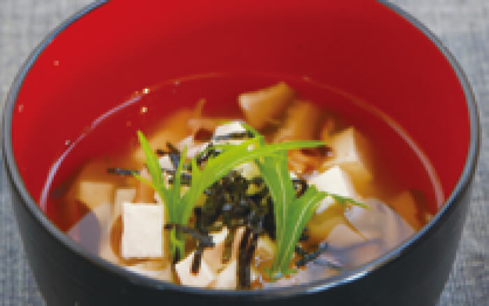 もとは精進料理に使われていた延岡の郷土料理「八杯汁」。とろみのある汁は、乾燥しいたけ、こんぶ、花かつおでとったダシがしっかり効きつつ、やさしい味。「八杯もおかわりしたくなる汁」という由来をもつだけあり、また次がほしくなるひと品。