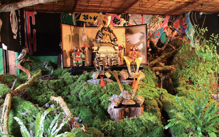 コケや岩、タケノコ、流木などを使って再現された奥山の風景に、五月人形やかぶと、こいのぼりなどが飾られた男山は町内11ヵ所で展示され、山の雄大さや力強さ、子どもへの深い愛情が感じられる飾りに、 町内外から訪れた観光客が歓声を上げていました。