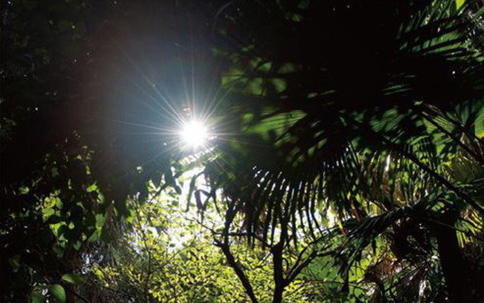 『兄である海幸彦から借りた釣り針をなくしてしまった山幸彦。途方に暮れて海辺にたたずんでいると、航海の神・シオ ツチノカミが現れ、それなら海の神・ワタツミの宮へ行くがよいと、告げられま す。いわれた通りにワタツミの宮へと向かった山幸彦は、そこでワタツミノカミの娘・トヨタマヒメに出あいます。一目で惹かれ合ったニ人は、ほどなく結婚し、ワタツミの宮で幸せな時を過ごしたのでした。三年の月日が経ったある 日、ふと、なぜ私はワタツミの宮へやって来たのだろう、と考えた山幸彦。なくしてしまった釣り針のことを思い出し、トヨタマヒメにどうすればいいのかを相談します。それを伝え聞いたワタツミノカミは、海にいる魚たちを呼び集め、甥ののどに刺さったままになっていた釣り針を発見します。こうして釣り針を取 り戻した山幸彦は、海幸彦がいる陸の世界へと戻っていったのです』。 その後、山幸彦の子どもを産むため、トヨタマヒメが跡を追ってきました。山幸彦 は船戸の岩屋に大急ぎで産屋をつくり、ウカヤフキアヘズノミコトが生まれたのです。青島神社は、ワタツミの宮から戻ってきた山幸彦の宮居の跡と伝えられています。亜熱帯性植物が生い茂る境内には、神話にまつわる多くの見どころがあります。