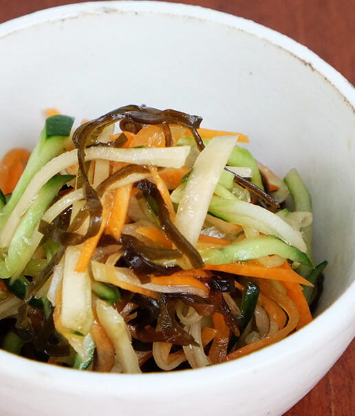 塩昆布の旨味が素材に絡み、新生姜がピリリと効いてアクセントに!