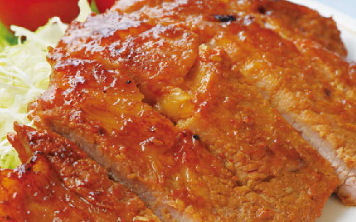 化学調味料を一切使用しない、自家製のみそダレに漬けた肩ロース。