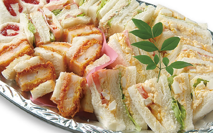珍しい「サンドイッチのみのオードブル」は、そのバラエティ豊かな種類で大人気。