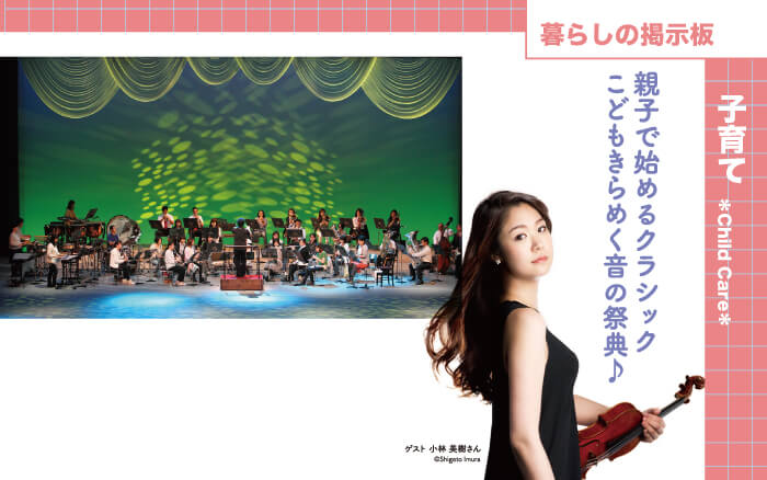 ゲストにバイオリニストの小林美樹さん(宮崎国際音楽祭出演)を迎えるほか、市内の児童生徒による合唱など、クラシックやポップス音楽を組み合せ、聴き馴染みのある音楽を中心に演奏します。
