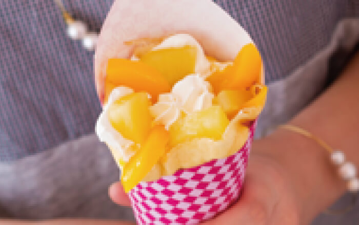 メインのパイン&ビーチは、生クリームにも負けない濃厚な甘み。だけど、後を引かないフレッシュさがイイんだよね~ 。