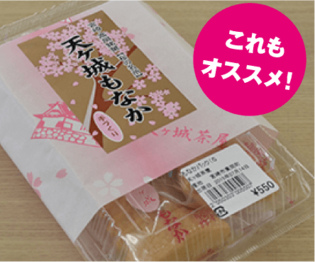 「天ケ城もなか」はその名の通り天ケ城をかたどったもの。5個入。