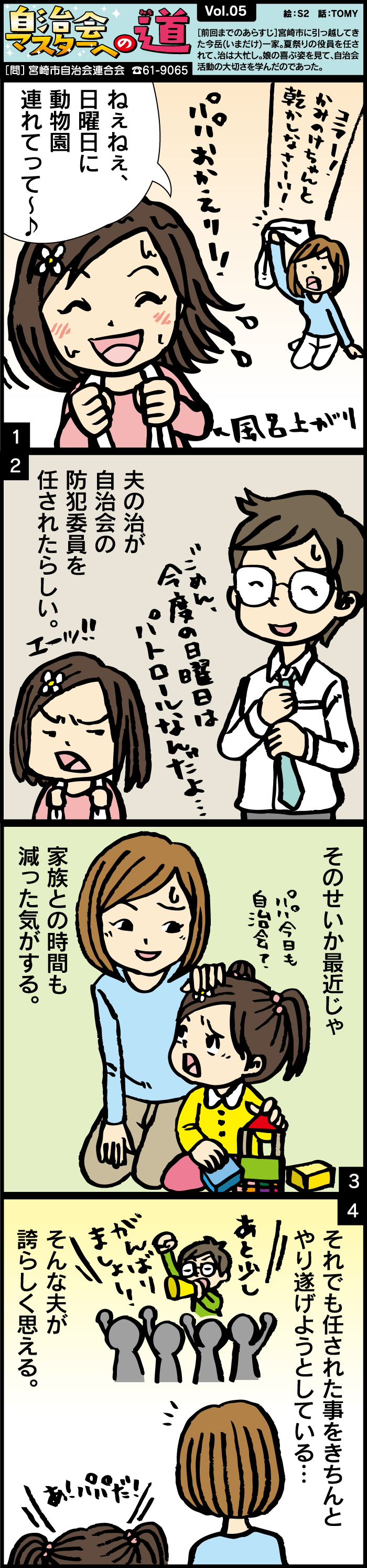 夏祭りの役員を任されて、治は大忙し。娘の喜ぶ姿を見て、自治会活動の大切さを学んだのであった。