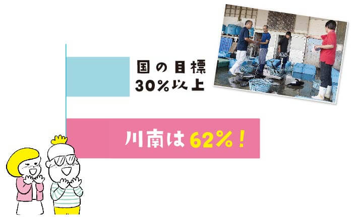 川南町の学校給食はふだんから地元食材がたくさん。国が目標として定める“30%以上”を大きく上回る、地産地消割合62%を達成しています。