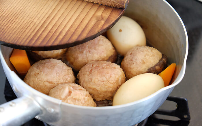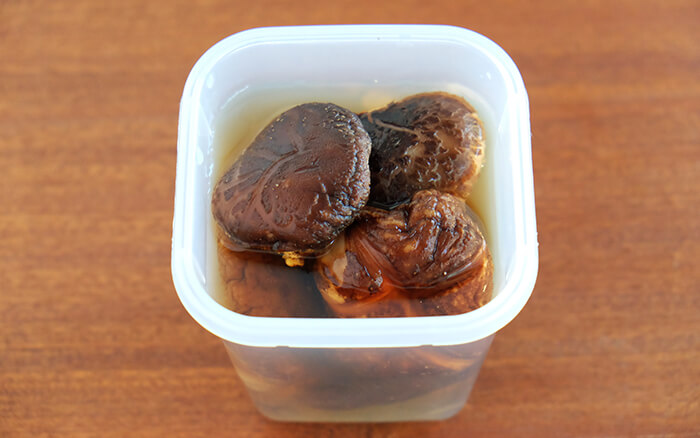 乾シイタケの戻し汁と鶏肉の旨みが染み込んだおかずです。