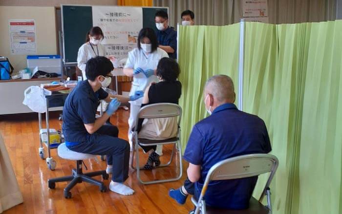第1回目は5月10日から13日にかけて行われ、西米良診療所の片山先生、塚本先生が、1人ひとり体調を確認しながら接種を行い、大きな混乱もなく終了しました。