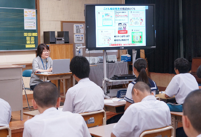 7月16日、西米良中学校でインターネットと人権についての講話が行われました。