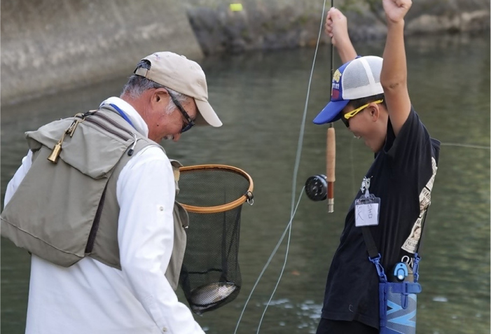 教室は地域の魅力発信を目的に漁協によって整備されたニジマス釣り場で行われ、日本フライフィッシング協会の講師が釣りの指導にあたりました。