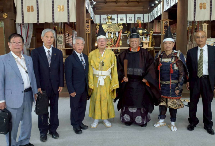 10月15日、菊池神社(熊本県菊池市)で秋季例大祭が行われ、村から菊池氏奉賛会理事等5名が参加しました。