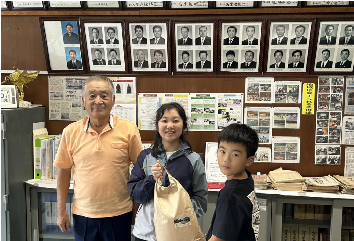 村の子どもたちへ新米を寄贈