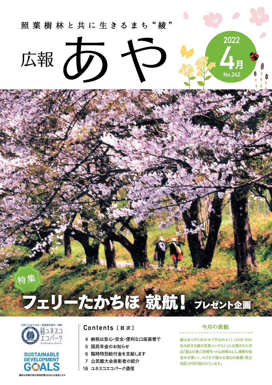 「広報あや」は綾町役場から毎月1回発行している広報誌です。