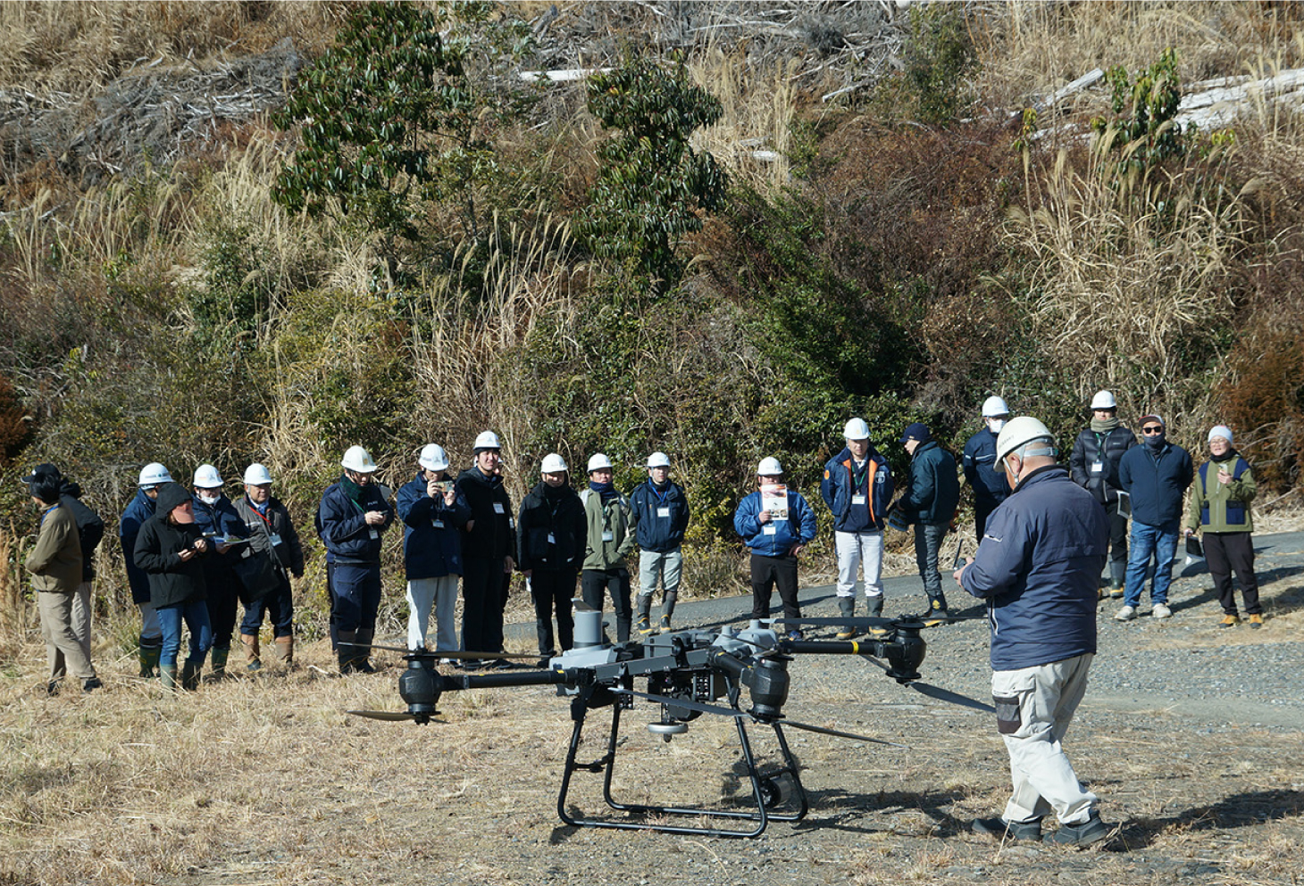 今回は、西米良村の担い手対策や林地保全に向けた取組の紹介、苗木運搬用ドローン実演見学会などが行われました。