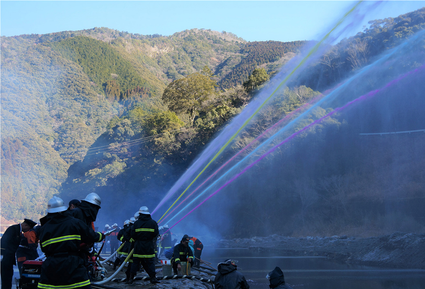 その後、一ツ瀬川河川敷で一斉放水を披露。寒さの中での訓練でしたが、団員の熱い気持ちが伝わり、地域の安全が守られていることを実感できる一日でした。
