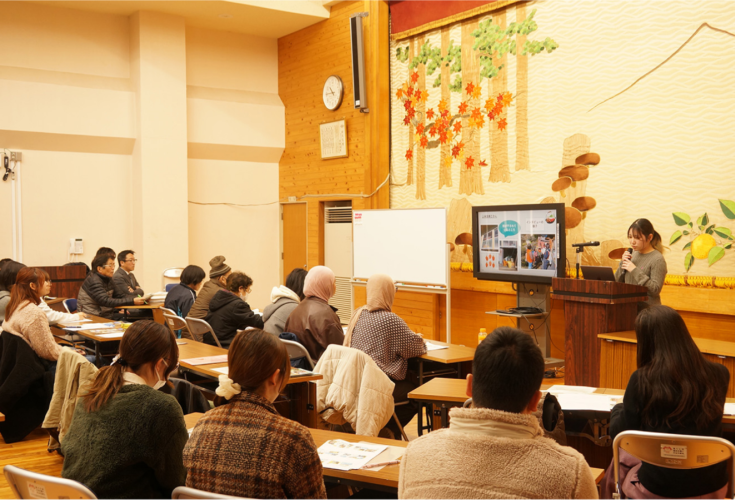 1月15日、宮崎大学創生学部の学生による西米良村実習の報告会が基幹集落センターで行われました。