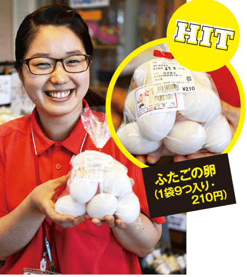 朝採れの新鮮な食材がそろうマルシェの中でもひときわ注目を集めるのが「ふたごの卵」。黄身が濃くて甘いと買い物客の口コミで広がり、1回の配達で仕入れる20袋ほどは、1〜2日で売り切れるとか。
