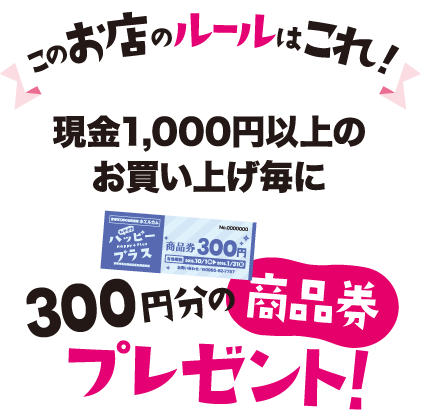 ※原則として、当日レシート合算で、上限額は5,000円まで (1,500円分)となります。