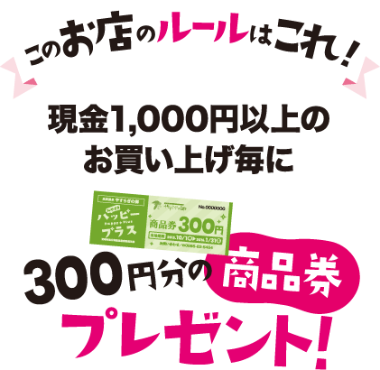 ※原則として、当日レシート合算で、上限額は5,000円まで (1,500円分)となります。
