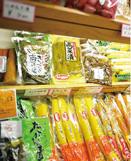 田野の特産品といえば漬物。施設内にはたくさんの種類の漬物があります。