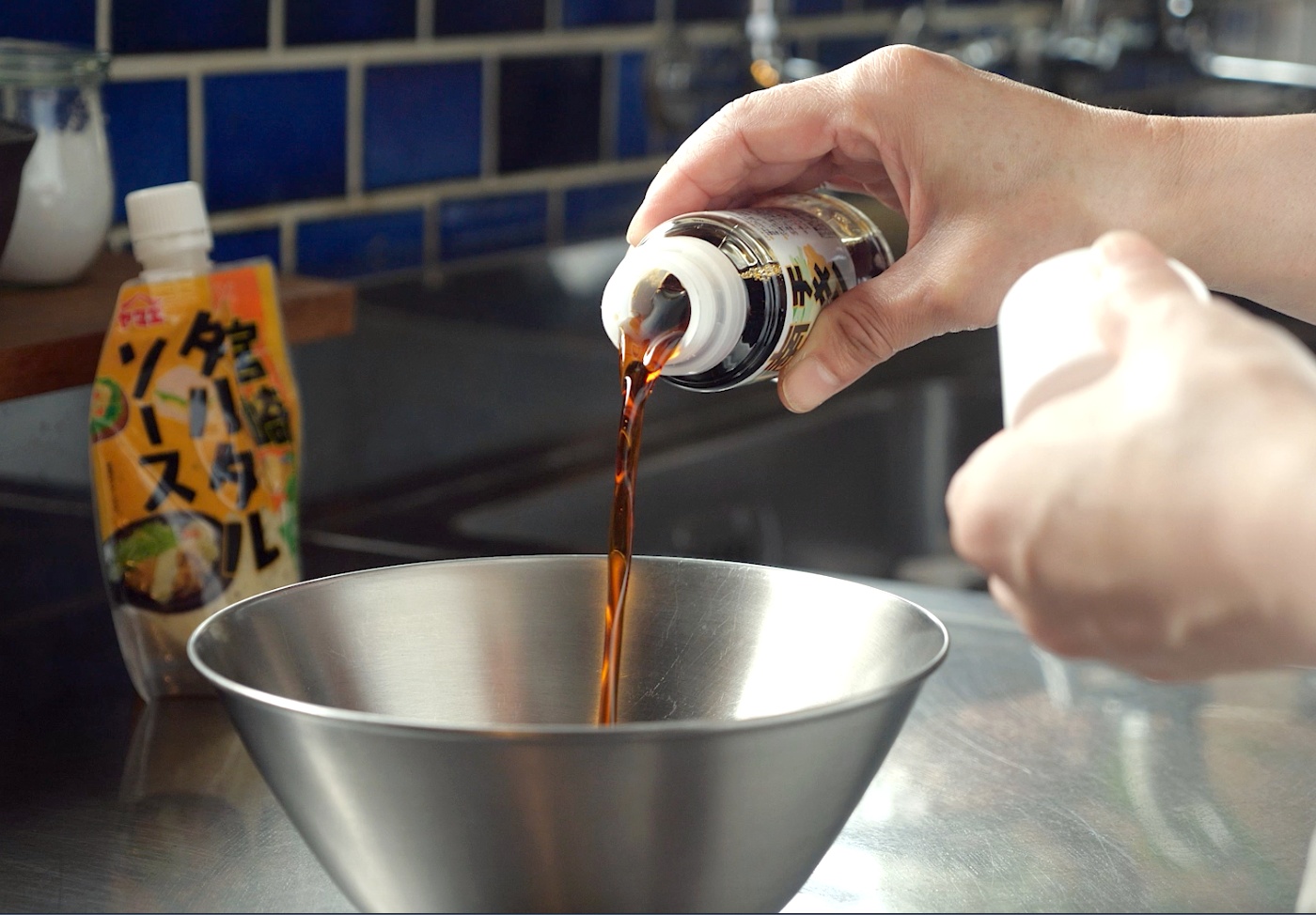 03 ボウルに宮崎チキン南蛮のたれを入れる