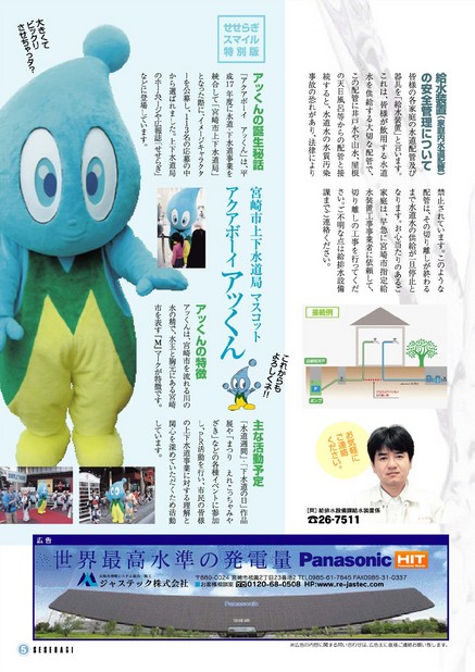宮崎に関わるゆるキャラ達とは?!どんなゆるキャラたちがいるのか調べてみました。 宮崎に関わるゆるキャラ達とは?!どんなゆるキャラたちがいるのか調べてみました。 宮崎に関わるゆるキャラ達とは?!どんなゆるキャラたちがいるのか調べてみました。 宮崎に関わるゆるキャラ達とは?!どんなゆるキャラたちがいるのか調べてみました。 昨今のゆるキャラブームで、宮崎県にもたくさんのゆるキャラがいるみたいです。 宮崎市観光イメージキャラクター ミッシちゃん 身長は太陽のタマゴ10個分だそうです。頭にはワシントニアパームが生えている可愛い女の子です。 宮崎たべてん!2013秋冬号 宮崎県のシンボルキャラクター「みやざき犬」 可愛い犬のトリオです。それぞれが色んな宮崎が大好きです。 Jajaみやざきアピール号プレミアム 高原駅開業100周年記念キャラクター 百(もも)ちゃん 広報たかはる 2013年6月号 カンムリウミスズメ かどっぴー 広報かどがわ 2013年6月号 えびの市のマスコットキャラクター「みなほ」 「田の神さあ」をモチーフにしていて、山盛りごはんにしゃもじをもって、なんだか幸せな気分になるキャラクターです。ごはんはとっても美味しそうです。 広報えびの2013年4月号 小林市の観光イメージキャラクター こすモ~ コスモスの花びらのようなスカーフを首に巻いた黒い牛さんだそうです。つぶらな瞳と意志の固そうな口がキュートです。ちなみに誕生日は10月29日ですって。 広報 こばやし 2013年4月号 乾しいたけ貴婦人 ふっくらとした髪型が艶やかな貴婦人です。キャッチフレーズは「あなた、干からびていません?」だそうです。思わずドキッとしてしまいました。気品を感じますね。 広報もろつか 2013年7月号 宮崎市上下水道局 マスコット アクアボーイ アッくん 川の水の精だそうで、胸元の『M』マークは宮崎を表しているとのことです。水色、緑、黄色のコントラストでものすごい存在感ですね。 宮崎市上下水道局だより「せせらぎ」第23号
